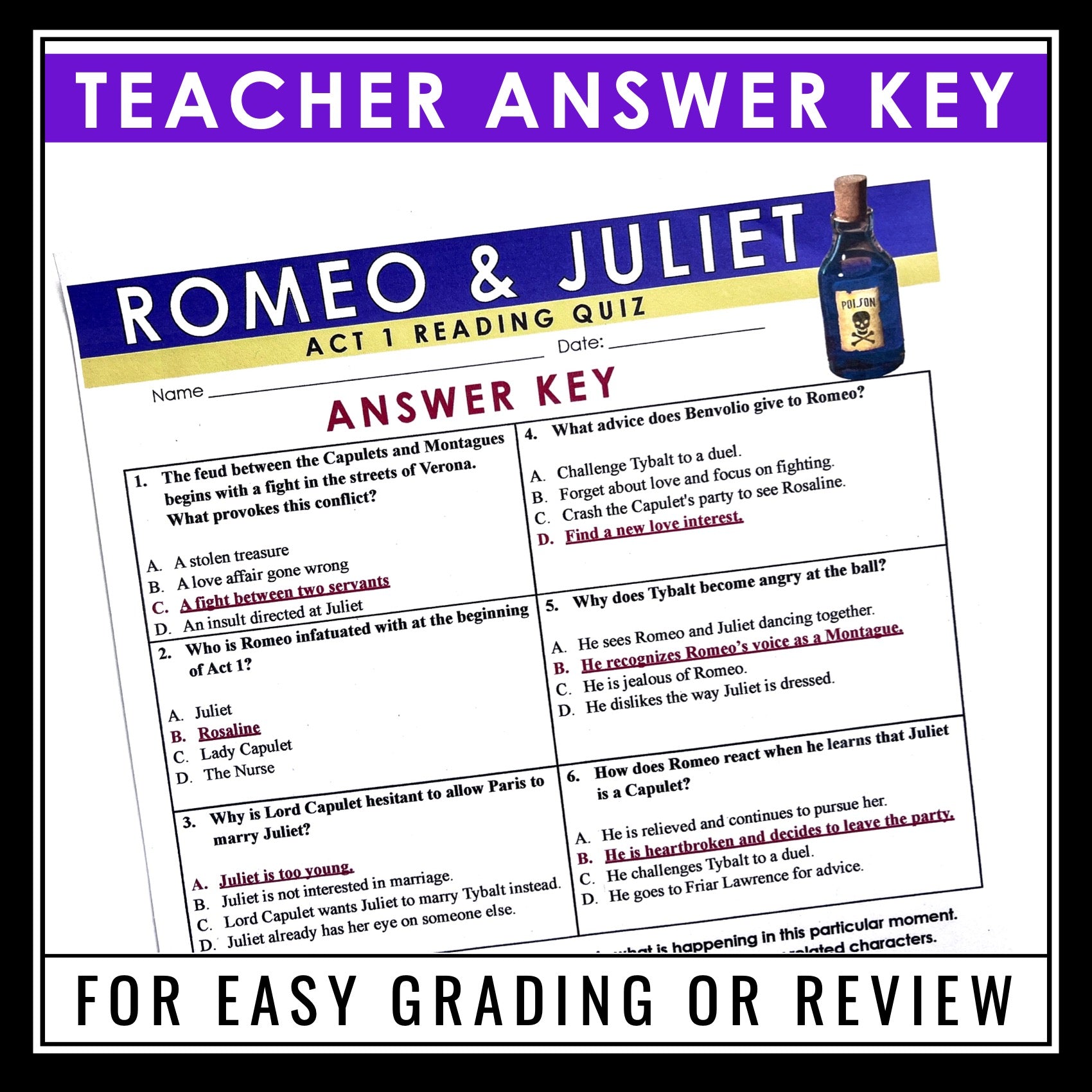 Romeo and Juliet Quizzes Multiple Choice and Quote Quizzes